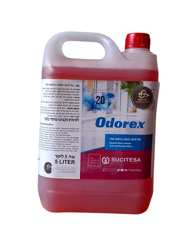 נוזל לניקוי רצפות על בסיס אלכוהול בבישום כפול בנחוח אודורקס (ניחוח של ניקיון) אינו משאיר סימנים, מתייבש במהרה ומנקה ביעילות. 5 ליטר מחיר ל 100 מ"ל 2.4 ש"ח.