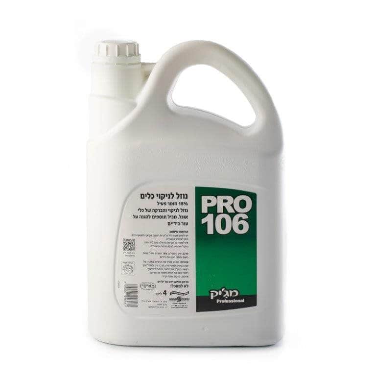פרו106 נוזל לניקוי כלים 18% 4 ליטר מחיר ל 100 מ"ל 0.7 ש"ח.