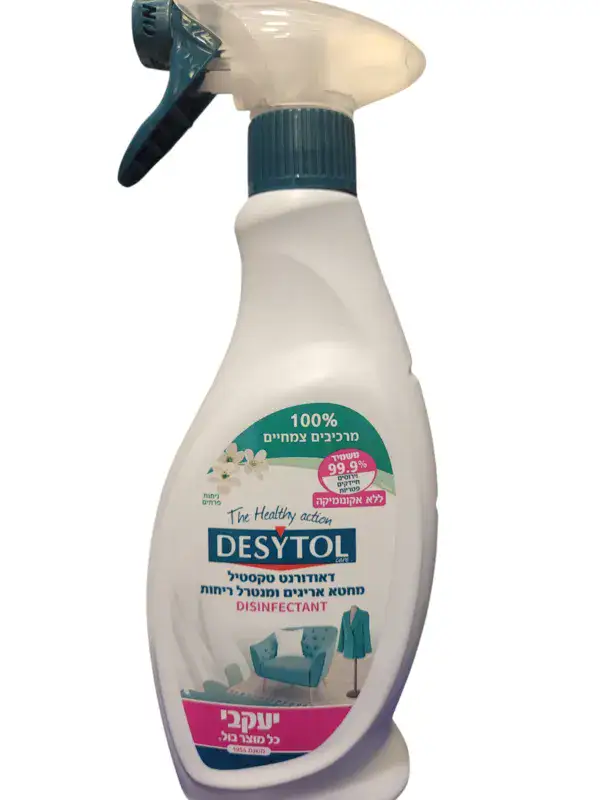 דאורדורנט טקסטיל מחטא אריגים ומנטרל ריחות. טוב בעיקר לבדים שלא ניתן לכבס ודורשים חיטוא, רענון, בישום קל 100% רכיבים טבעיים 500 מ"ל מחיר ל 100 מ"ל 6 ש"ח.