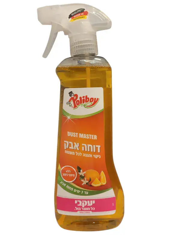 מנקה ודוחה אבק מכל משטח, אינו משאיר סימני ניגוב. 500 מ"ל מחיר ל 100 מ"ל 5 ש"ח.